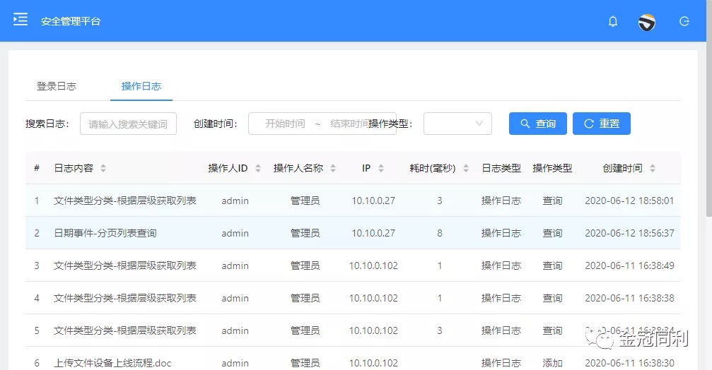 文档统一上传到安全管理平台解决了纸质文档、电子文档在个人管理下,由于人员离职、职位变动后,文档交接过程中存在交接文档不全面或者有遗漏问题。内置文档分类模板和支持文档分类的自定义,方便简化文档的管理。同时支持多条件查询功能。